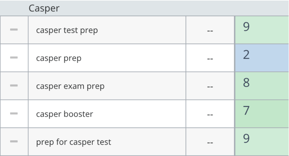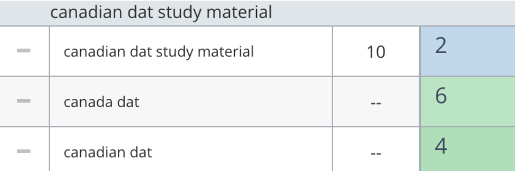 - Збір ключових слів по пріоритетних тестаx DAT (Dental Admission Test), та кластеризація запитів, а також для інших тестів – OAT, INBDE, Casper, CDAT та PAT