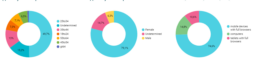 Стартовий рекламний бюджет 35$, стратегія призначення ставок – Максимум кліків, із обмеженням по ціні. Аудиторії – жінки 25-44, 55-65 років, та націлення за інтересами та намірами: