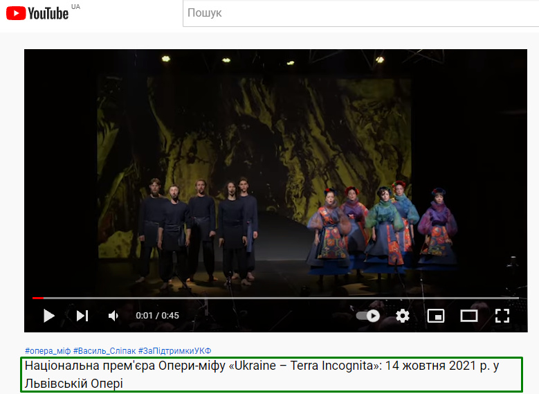Національна прем’єра Опери-міфу «Ukraine – Terra Incognita»: 14 жовтня 2021 р. у Львівській Опері: