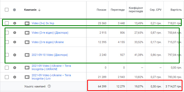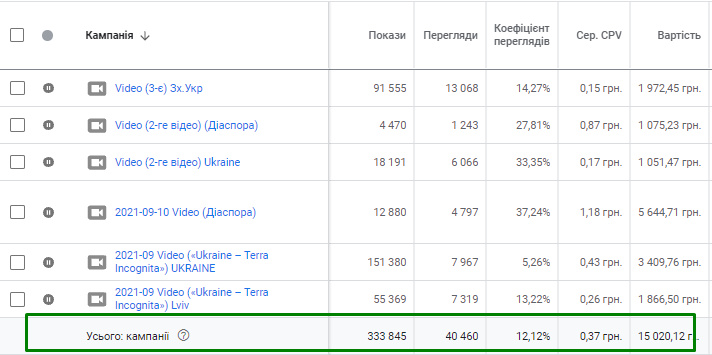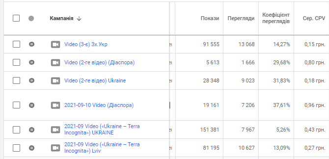 – 0,36 грн середня вартість за перегляд.