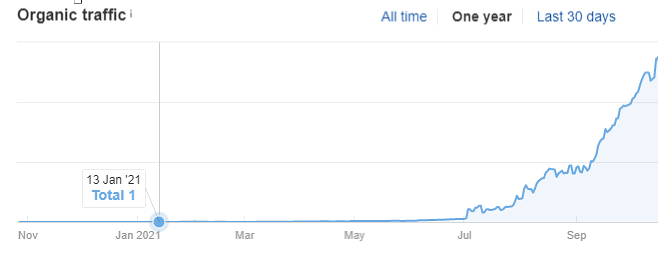 3-й етап. Запуск і моніторинг, оновлення і наповнення сайту. Вже через 3 дні отримали перші кліки з органіки, сервіс Ahrefs побачив їх набагато пізніше