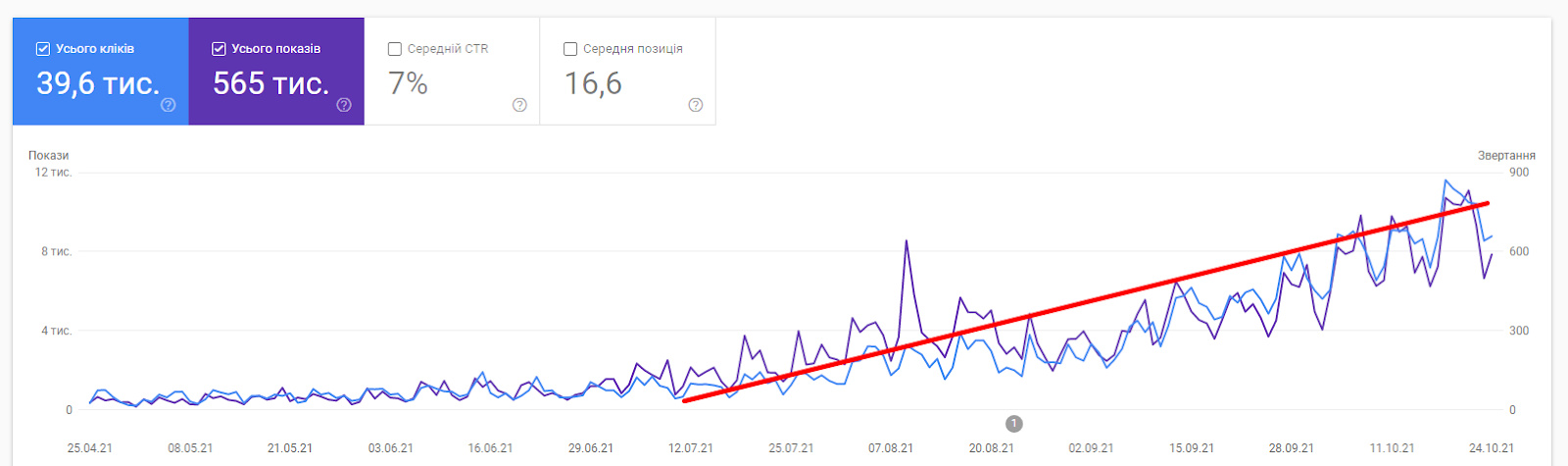 Чіткий ріст трафіку і відвідувачів на сайт. З липня бачимо стрімку динаміку зростання органічного трафіку.