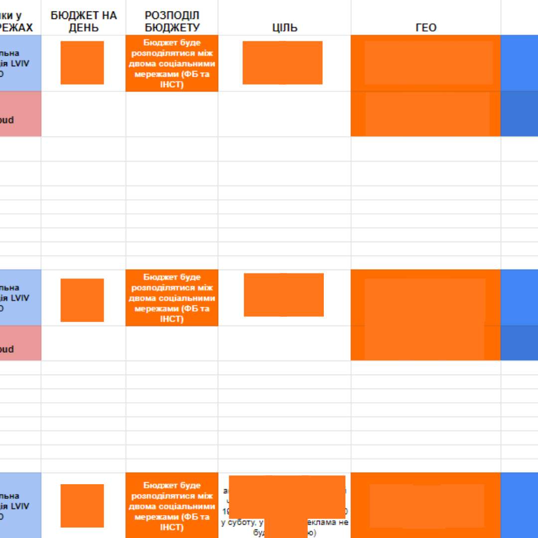 Детальні дані щодо цільової аудиторії та бюджетів не наводимо у зв’язку з комерційною таємницею.