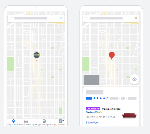 Як працюють локальні кампанії: Google компонує оголошення з елементів, які ви завантажили в рекламну кампанію. На основі машинного навчання алгоритми показують їх тим користувачам, які з більшою ймовірністю відвідають ваш офлайн-магазин.