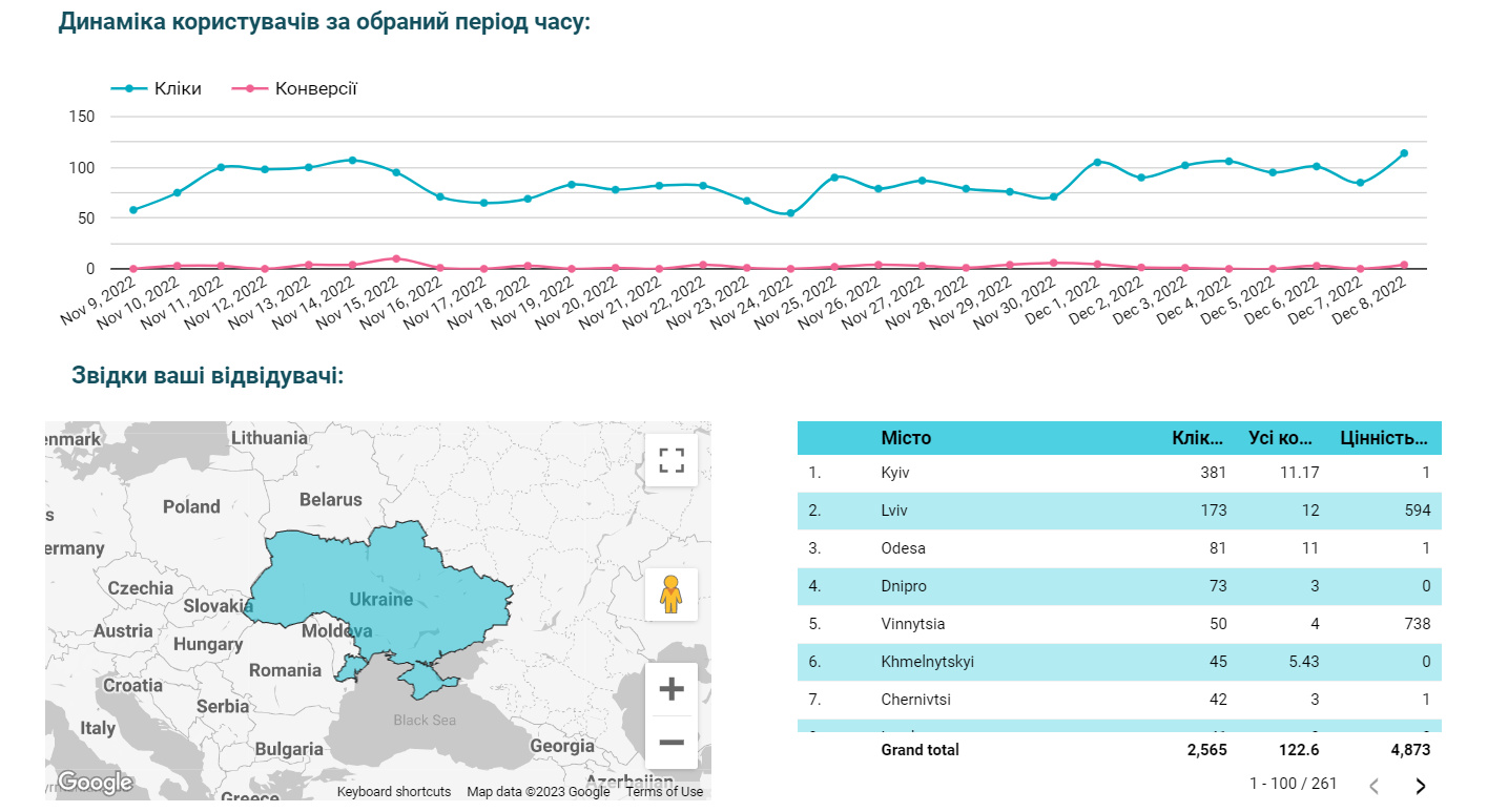 Показники після перших 30 днів реклами: