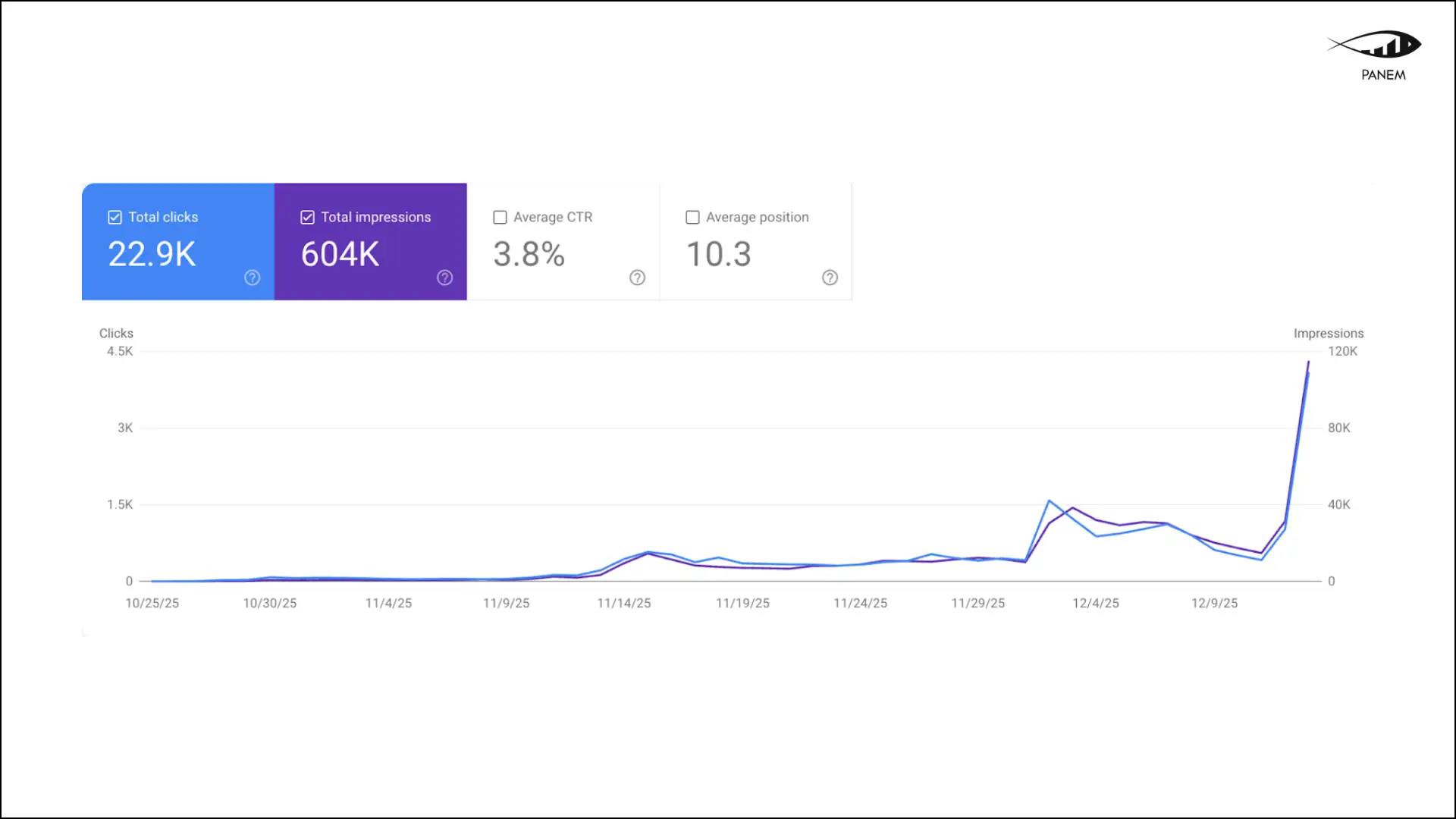 Дані чітко демонструють стрімкий висхідний тренд уже невдовзі після запуску, із різким зростанням як показів, так і кліків наприкінці аналізованого періоду. Це підтверджує швидку індексацію, зростання видимості та підвищення органічного попиту за широким пулом ключових запитів.