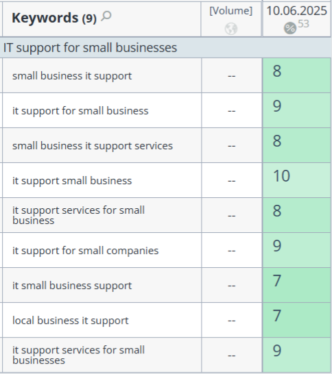 - Позиції в ТОП-10 за важливими комерційними запитами