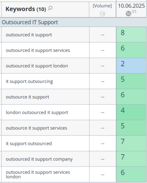 - Конкуренти: Локальні компанії з IT support послугами в Лондоні з сильним контентом та посиланнями.